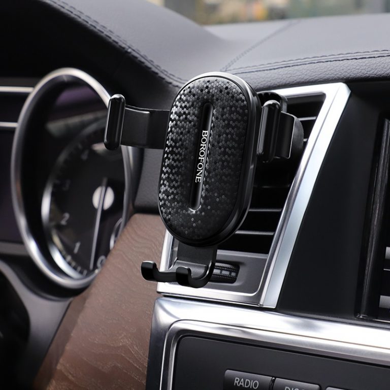 Giá Đỡ Điện Thoại Xe Hơi BOROFONE BH11, Xoay, Cửa Thoát Khí có thể điều chỉnh được kích thước chiều rộng một cách linh hoạt. Cho phép nới rộng giá, để sử dụng cho những thiết bị có kích thước chiều ngang lên đến 85mm. Cơ chế kẹp cho thấy sự chắc chắn ở mọi góc độ. Vị trí những điểm tiếp xúc với điện thoại đều được lót một lớp đệm cao su mềm, vừa có tác dụng tăng độ bám cho điện thoại, vừa bảo vệ bề mặt điện thoại khỏi tình trạng trầy xước trong quá trình sử dụng. Sử dụng giá đỡ gắn trên taplo của ô tô.